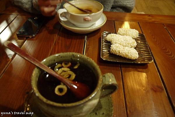 ▲我們逛仁寺洞+北村逛到天黑,就趁著精疲力盡時喝杯韓國傳統茶來補充一下精氣神