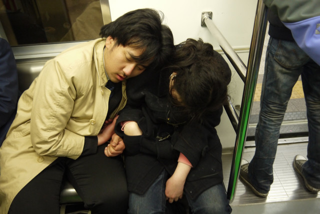 ▲這一對情侶在地鐵上睡的超熟的!!一連幾個人教他們醒來,他們仍不為所動,繼續睡大頭覺! 超屌的!!