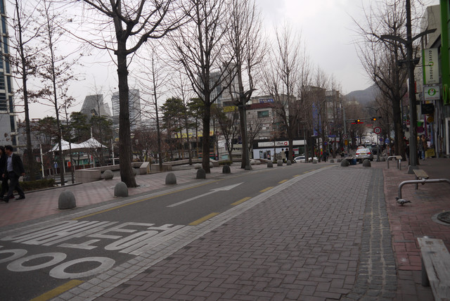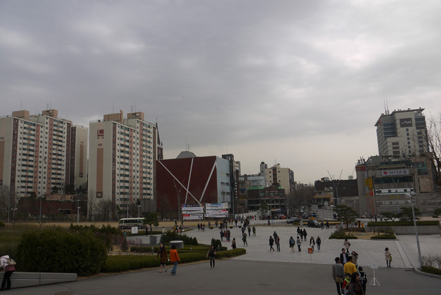 ▲一出地鐵站所看到的梨花校區周圍,還蠻漂亮的,兩旁都販賣女生所需用品