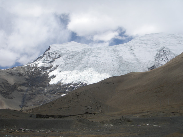 因為卡若拉冰川位於山口北面5600公尺左右地帶,該地方位於公路旁,長期都受到公路上車塵的覆蓋