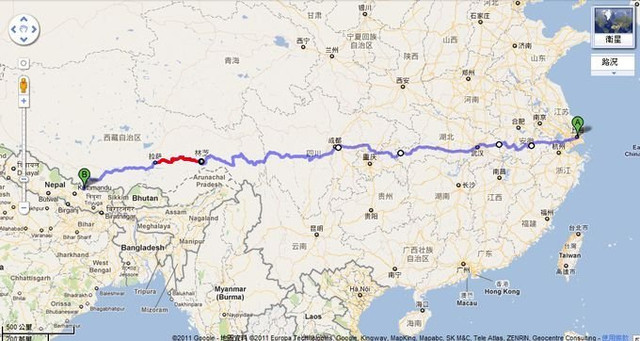 由上圖可以得知:318國道的起點為上海人民廣場,終點則在尼泊爾邊境的樟木,全長5476km。