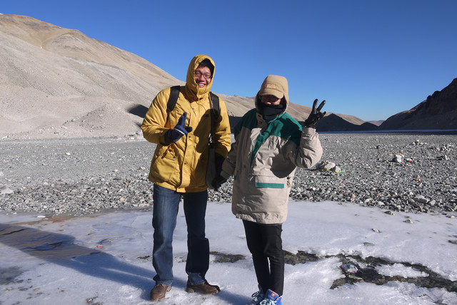 因為珠峰夜晚低溫已到0度以下,再加上我們住的帳篷根本毫無保暖功用可言,被子蓋了很多層