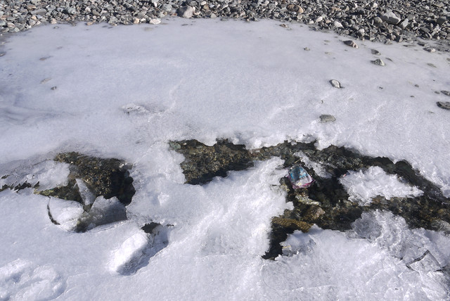 不知道是不是我們穿太多厚衣服,腳下的小冰川在我們離開後,毫不留情的給我..裂..掉