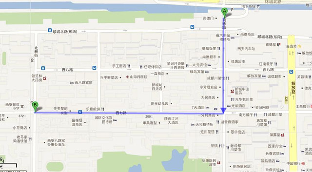 出西安火車站時先問人"尚德門"在哪,找到後沿著尚德門方向一直走,在左手邊會有一條"西七路" (key word:尚德門)