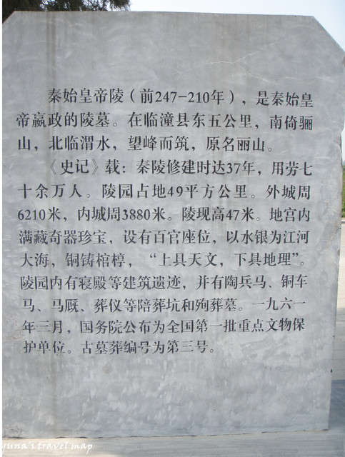 我們沿著秦始皇陵指標一路走了半個多小時,終於走到了,只看到一個寫著秦始皇地陵的碑