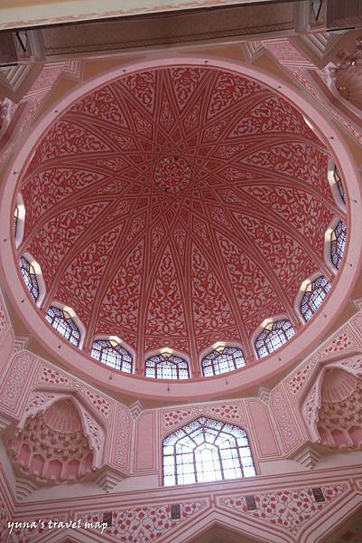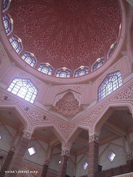 ▲進入正殿後抬頭一望,盡是粉紅的屋頂與彩色玻璃窗,真的很美