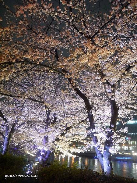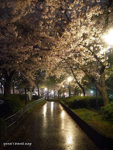 ▲這次是專程來賞夜櫻,但剛好遇到櫻花剪修,有點稀稀落落.