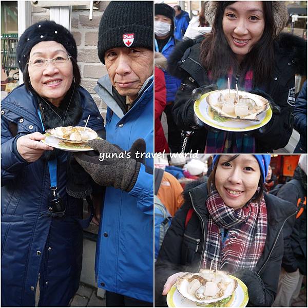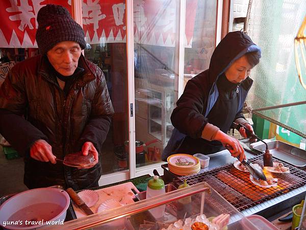 ▲在函館朝市約有2~3間都是在賣現烤扇貝,我們吃的是位在最裡面的"新鮮食味", 但應該都非常美味~( ̄▽ ̄)~*