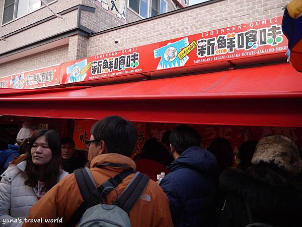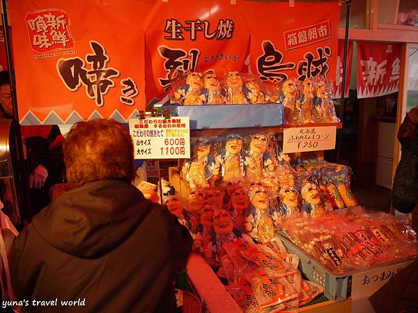 人超多,拍不到魷魚本身,不過軟軟的非常好吃喔,但帶不回台灣,只適合在北海道當地吃,掙扎了一下就放棄買了