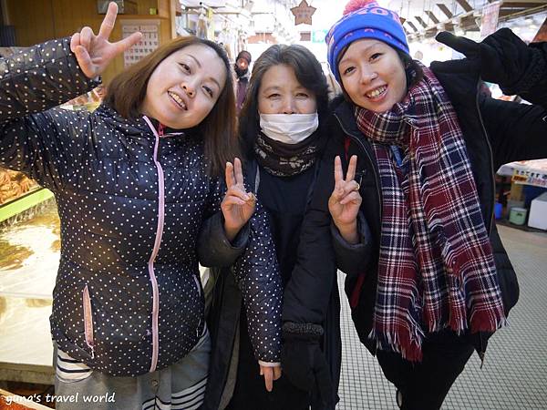 ▲可愛的干貝店老闆娘~跟優娜妹聊的很開心,一直問許多台灣的問題,還不忘謝謝台灣幫助過日本XDD