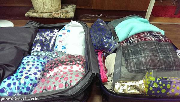 阿七八雜的帶了許多,最後是裝滿了一整個29吋行李箱+一個小袋子(衛生棉都裝在這邊) , 總重量:23.6/KG,