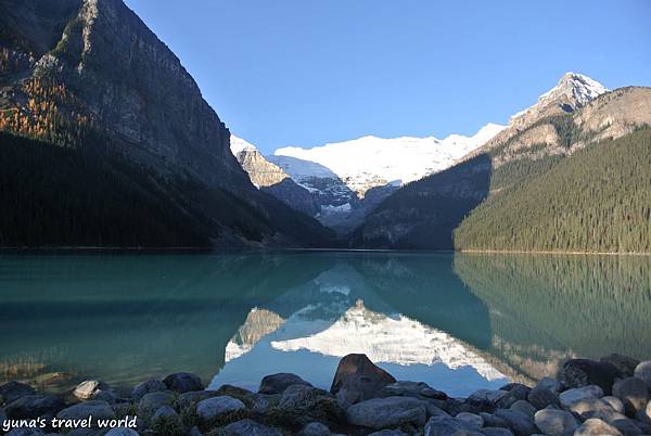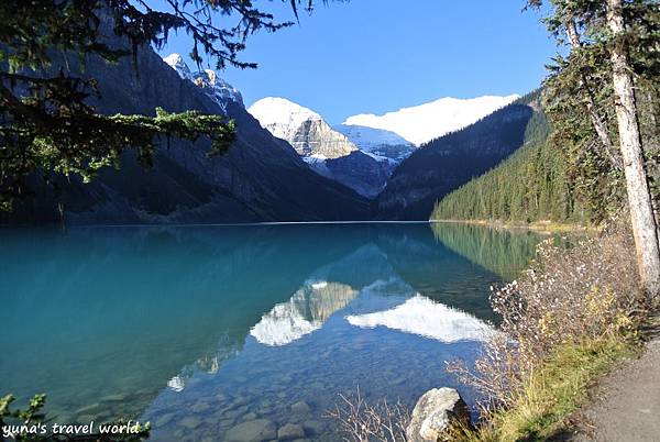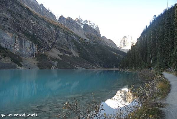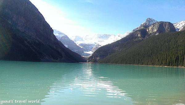 接著才注意到湖本身,不過優娜覺得路易斯湖之所以會如此有名,都要歸功於後頭壯麗的峽谷景色