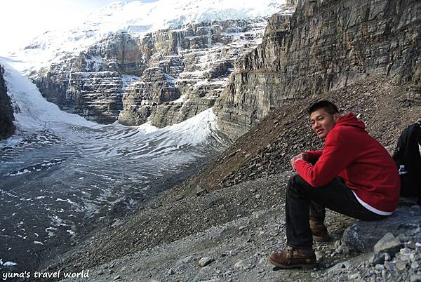 ▲冰山的另一面則是路易斯湖,不看還好一看卻發覺已經爬了超級遠了!