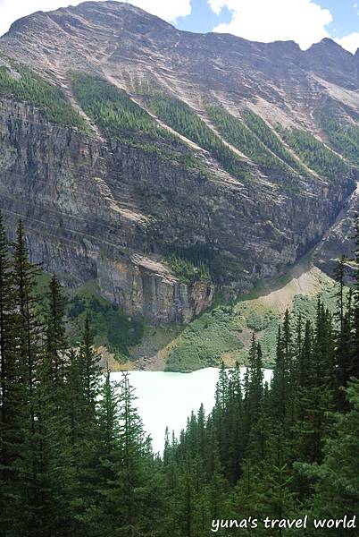 (在半山腰看路易斯湖一隅,顏色為特別的牛奶綠)