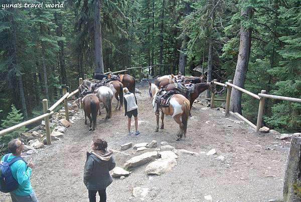 是的沒看錯! 路易斯湖登山步道都有兩種方式可上山:1. 靠自己 2.騎馬