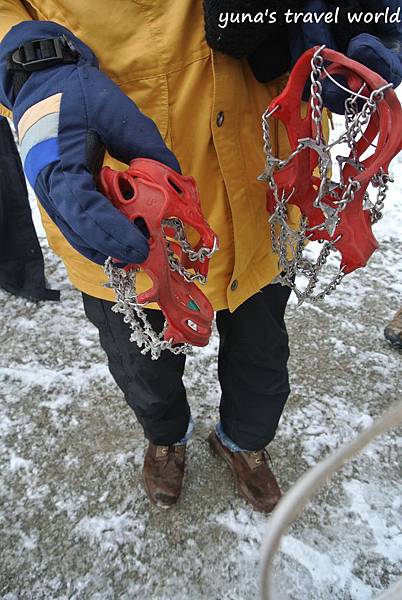 ▲不過在上冰原前要先套上冰爪,走在冰上面可不像一般柏油路一樣簡單,稍不注意就會滑個四腳朝天!