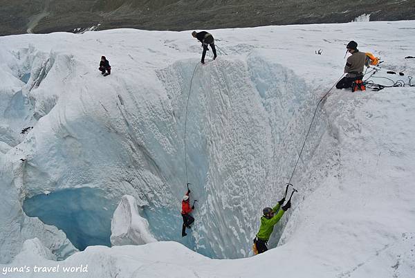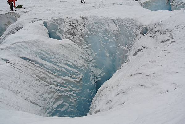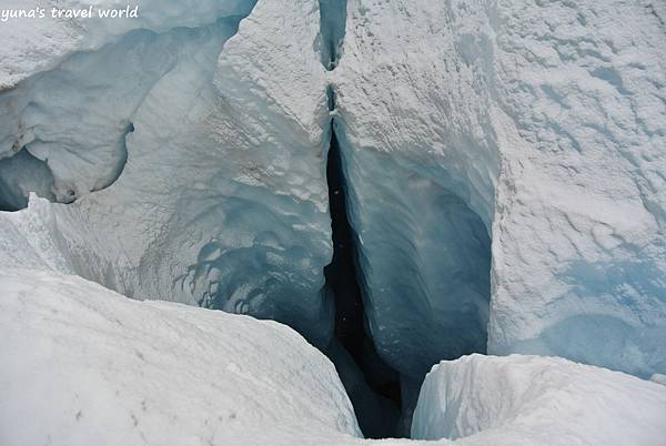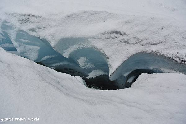 而這些裂縫都深埋在白雪下面,稍不注意便會失足摔落,聽說今天夏天才因為有遊客自行跨越行走掉進裂縫中而喪生!