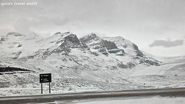 光開冰原大道這一條路就夠值回票價(當然坐在副駕駛座更是爽阿),S先生說洛磯山脈有了雪的加持後更顯壯觀