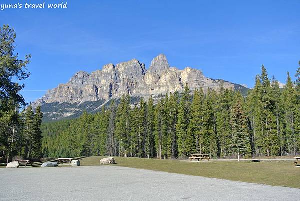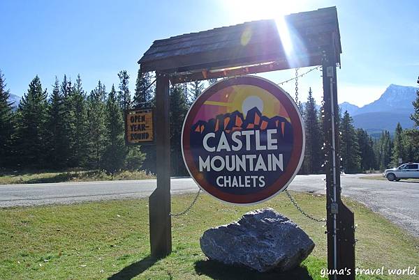 ▲ 觀賞城堡山的最佳位置在"Castle Mountain Chalets",其實也不用怕找不到,地標很大很顯眼且又距離Jonstone Canyon不遠~