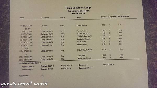 ▲每天上班會拿到的清單~ supervisior每天都會排好房間數,不會過量,不過若是遇到房間很髒真的清不完,可以跟supervisior要求支援~